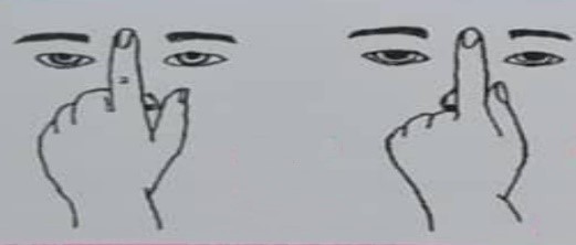 In both hands, place the little finger at the base of the thumb, the ring finger on the top joint of the thumb, and the middle finger on the tip of the thumb. The index finger is straight. Continue for four to six minutes. Keep the hands about 10 centimeters away from the body. When the arms get tired, place the hands on your thighs.